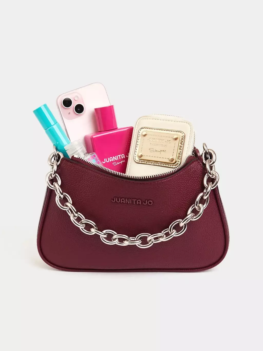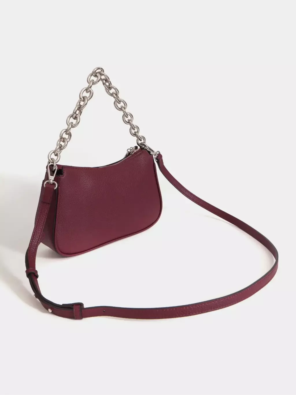 Esta bandolera redefine el estilo simple con su cadena chunky metálica, que podés lucir como detalle trendy o llevar como correa corta.