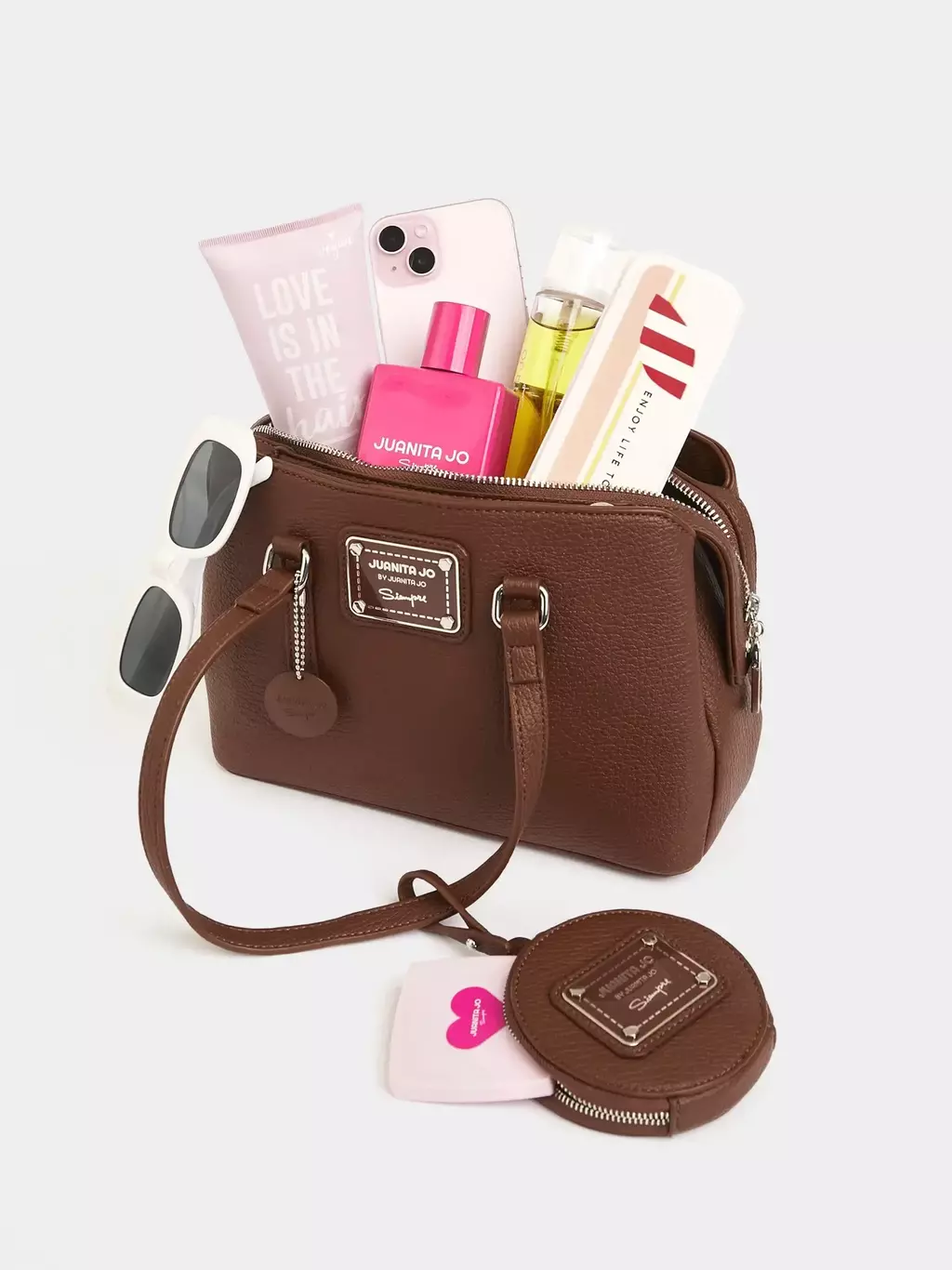 Esta cartera negra está confeccionada en material alternativo al cuero y viene con un monedero extraíble con chapa metálica, perfecto para combinar con otras Juanitas de tu colección. Su correa regulable y desmontable te permite llevarla cruzada para un look moderno y urbano, o en mano para un estilo más sofisticado. Es ideal tanto para una jornada intensa en la oficina como para una salida nocturna. El negro se convierte en el comodín que combina con todo: desde total denim hasta outfits en tonos vibrantes, dándote una sensación de seguridad y estilo en cada uso.