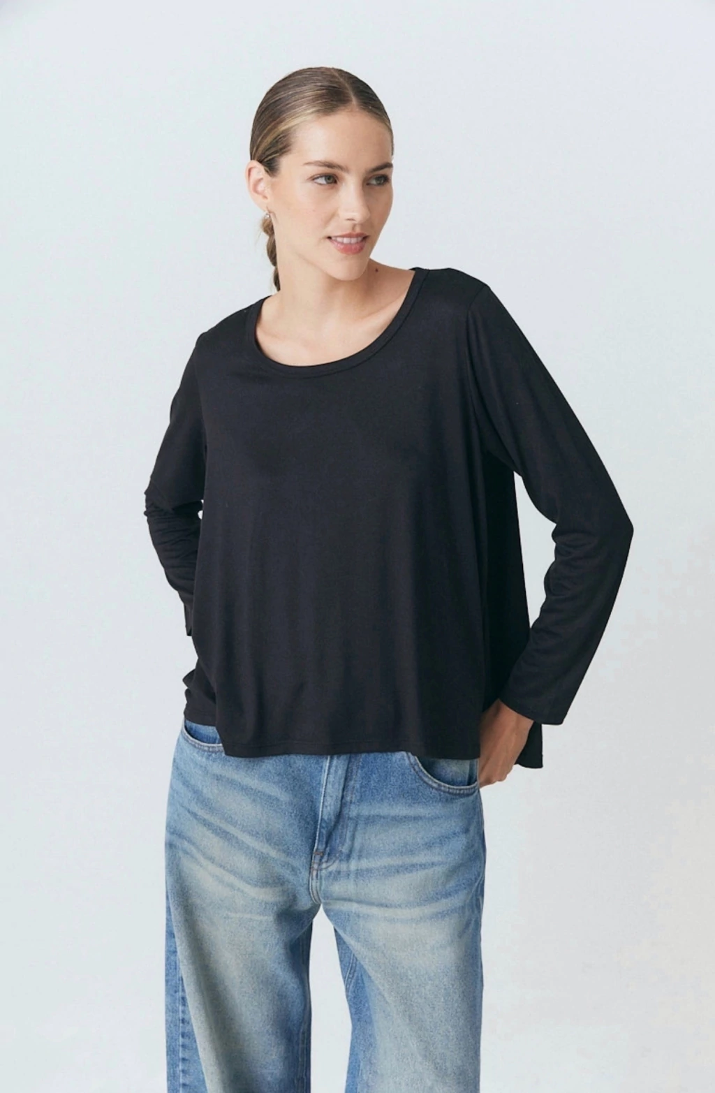 Sumá un básico infalible a tu guardarropa con esta remera de manga larga en color negro.